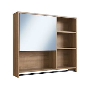 O charme e o bom gosto para renovar o seu banheiro estão ao seu alcance, ou melhor seu banheiro mais elegante e diferenciado com a nova coleção da Placa & Ponto! Essa linda espelheira com 4 nichos, suporte para toalhas, uma ótima portas com espelho, prateleiras internas para acomodar todos os seus pertences e com cores modernas traz todo o requinte que o seu banheiro precisa. Renove agora mesmo o seu banheiro com a coleção da Placa & Ponto! Acabamento da Porta: Finish Foil Acabamento da Prateleira: Finish Foil Altura do Espelho: 40 cm Ambiente Principal: Banheiro Complexidade da Montagem: Média: pode ser montado por mais de uma pessoa e/ou necessite de maior conhecimento para montagem Composição: MDP Cor: Preto/Mel Cor do Produto: Preto/Mel Cor Flex: Não Cor Interna: Marrom Escala de Brilho: Fosco Espessura do Espelho: 3 mm Espessura do Material da Estrutura: 15 mm Fita Integrada: Não Formato do Espelho: Retangular Formato Espelheira: Retangular Itens Inclusos: 1 armário espelheira e manual de montagem Largura do Espelho: 46 cm Linha ou Coleção: Banheiro Manual de Montagem e Instalação: https://product-hub-prd.madeiramadeira.com.br/958138/documents/92e6ff5e-cf75-48ab-a529-9a8d18c1171a2446972522517286622111429.pdf Marca: Placa e Ponto Material da Porta: MDP Material da Prateleira: MDP Material Principal: MDP Montagem Flex: Não Necessita Montagem: Sim Origem do Produto: Nacional Peso: 16 kg Peso Máximo por Prateleira: 5 kg Possui Espelho: 01 Possui iluminação: Não Possui Portas: 01 Possui Prateleiras: 03 Possui Toalheiro: Sim Possui Tomadas: Não Recomendações de Uso, Manutenção e Limpeza: Para a limpeza do móvel utilizar uma flanela seca. Sistema de Montagem: Parafusos e cavilhas Tipo de Dobradiça/Corrediça da Porta: Metálica Tipo de Fixação do Espelho: Fita Dupla Face Tipo de Porta: Bater Tipo de Puxador da Porta: Não Possui