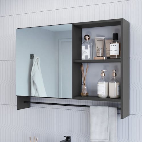 A renovação do seu banheiro a seu alcance, ou melhor seu banheiro mais elegante e charmoso com a nova coleção da Prodecor! Essa linda espelheira com toalheiro em aço com pintura epóxi, uma ótima porta com espelho, prateleiras internas para acomodar todos os seus pertences e com cores modernas traz todo o requinte que o seu banheiro precisa. Um diferencial maior é que suas toalhas são acomodadas bem a sua frente sem precisar furar parades. Componha agora mesmo o seu banheiro com a coleção da Prodecor! Acabamento da Porta: Finish Foil Acabamento da Prateleira: Finish Foil Altura do Espelho: 48,7 cm Ambiente Principal: Banheiro Complexidade da Montagem: Média: pode ser montado por mais de uma pessoa e/ou necessite de maior conhecimento para montagem Composição: 37% MDP e 63% Demais Mat Cor: Grafite Cor do Produto: Grafite Cor Flex: Não Cor Interna: Cinza Escala de Brilho: Fosco Espessura do Espelho: 3 mm Espessura do Material da Estrutura: 15 mm Formato do Espelho: Retangular Itens Inclusos: 1 Espelheira com Kit de Ferragens e Manual de Montagem Largura do Espelho: 46 cm Linha ou Coleção: Prodecor Banheiros Manual de Montagem e Instalação: https://product-hub-prd.madeiramadeira.com.br/956736/documents/7491b6c3-67c8-41fb-b2ca-be4d9c94873b2433501522517284069023305.pdf Material da Porta: MDP Material da Prateleira: MDP Material Principal: MDP Montagem Flex: Não Necessita Montagem: Sim Origem do Produto: Nacional Peso: 10,7 kg Peso Máximo por Prateleira: 2 kg Possui Espelho: 01 Possui iluminação: Não Possui Portas: 01 Possui Prateleiras: 02 Possui Toalheiro: Sim Possui Tomadas: Não Recomendações de Uso, Manutenção e Limpeza: Limpeza com pano levemente umedecido, não usar abrasivos Sistema de Montagem: Parafusos e cavilhas Tipo de Dobradiça/Corrediça da Porta: Metálica Tipo de Fixação do Espelho: Silicone Tipo de Porta: Bater Tipo de Puxador da Porta: Não Possui Marca: Prodecor