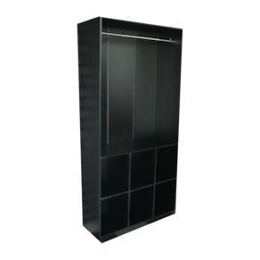 Versátil – Ideal para closets ou lojas Com cabideiro – 87 cm de espaço para pendurar 6 nichos amplos – Para roupas, bolsas ou sapatos Material – MDF 15 mm de alta qualidade Tamanho – 1,85m alt. x 90cm larg. x 35cm prof.