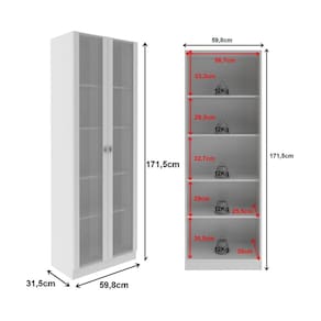 Dimensões do produto montado: Altura: 171,5cm | Largura: 59,8cm | Profundidade: 31,5cm *Você pode consultar as medidas internas na imagem técnica do produto. *As cores do produto podem sofrer variações de tonalidade de acordo com as configurações do seu dispositivo.