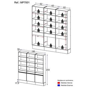 O produto será entregue desmontado e não disponibilizamos o serviço de montagem. Acabamento: Pintura UV | Tonalidade: Preto | Material: MDP | Referência do Modelo: MP7001 | Coleção: Armário | Instruções de Cuidado: Limpar com pano seco para retirar o pó. Não utilizar produtos químicos ou abrasivos a limpeza. Não aplicar lustra móveis. | Sistema de Montagem: O produto acompanha manual de montagem juntamente com kit ferragem. O produto será entregue desmontado e não disponibilizamos o serviço de montagem. | Produto Composto por: 1 armário/estante, manual de montagem e kit ferragem. | Altura Montado: 203 | Largura Montado: 186 | Profundidade Montado: 30 | Tamanho (L x A x P): 186 x 203 x 30 | Produto: Conjunto de Escritório | Peso do Produto: 117 | Requer Montagem: Sim | Fabrica Ean: 7909103722334