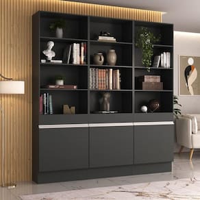 Armário/estante Escritório 3 Portas Multimóveis Mp7001 Preto/branco Preto/branco O Armário/Estante Escritório 3 Portas Multimóveis MP7001 é a solução perfeita para organizar seu ambiente de trabalho com elegância e praticidade. Produzido em MDP, possui um acabamento acetinado (cerca de 20% de brilho), garantindo um visual sofisticado. Com 3 portas com puxadores em ABS, você pode guardar seus pertences com segurança. Além disso, conta com 9 prateleiras espaçosas (suporta 5kg cada) para armazenar livros, documentos e objetos decorativos. Esse armário é o móvel ideal para tornar seu espaço de trabalho mais funcional e bonito. Os módulos são avulsos e você pode montar no seu ambiente na disposição que preferir. Conteúdo da Embalagem: 1 (um) Armário/Estante Kit Ferragem Manual de Montagem
