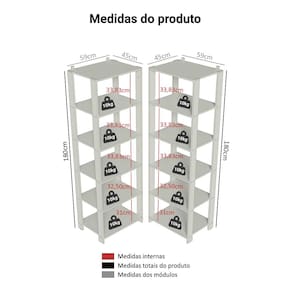 - Duas (2) Estantes abertas de 59 cm com cinco (5) prateleiras cada