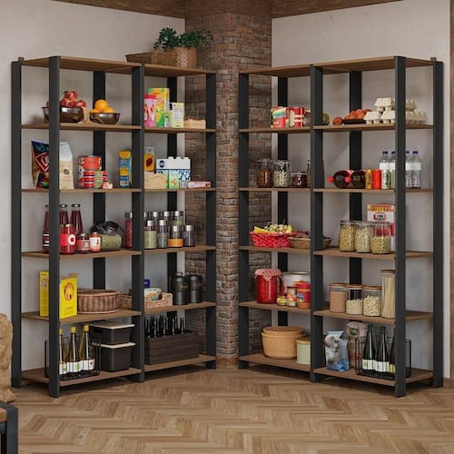 Com um formato de canto pensado para aproveitar melhor o espaço, este móvel conta com várias prateleiras espaçosas, ideais para armazenar eletros, utensílios e mantimentos de forma organizada e acessível.