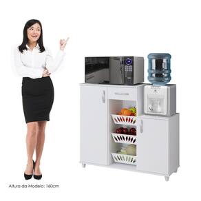 Com um design encantador, o Armário Recife traz charme e elegância a qualquer ambiente. Ele possui uma gaveta espaçosa, duas portas com prateleiras internas, um tampo resistente de 15 mm que acomoda com segurança um micro-ondas, além de espaço para bebedouro de até 20 litros. Também conta com três cestas de PVC para organizar frutas e legumes, garantindo maior durabilidade. Ideal para pequenos espaços, mantém seus utensílios sempre organizados. Produzido com a linha MDP Perfect, combina sustentabilidade e inovação tecnológica, proporcionando durabilidade e fácil limpeza. Sua pintura UV é resistente, de fácil manutenção, e ecologicamente correta, pois utiliza madeira de reflorestamento e contribui para a preservação ambiental.