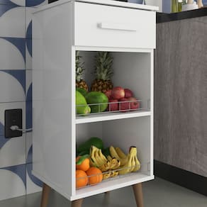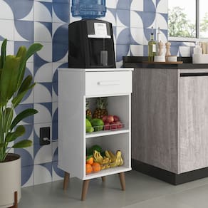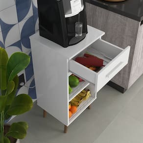 Balcão Multifuncional FênixSe você busca um móvel compacto, funcional e de design encantador, o Balcão Multifuncional Fênix é a escolha perfeita para otimizar e organizar seus espaços.Dimensões:86 cm de altura39,5 cm de comprimento38 cm de profundidadeEle oferece o equilíbrio ideal entre praticidade e elegância, sem ocupar muito espaço.Este armário conta com uma gaveta espaçosa para manter seus utensílios organizados e ao alcance das mãos, além de dois amplos compartimentos que podem ser utilizados conforme a sua necessidade.Perfeito para armazenar alimentos, produtos de limpeza ou até mesmo como apoio para micro-ondas ou bebedouros na cozinha ou lavanderia.Os pés palito, além de conferirem um toque moderno e charmoso, facilitam a limpeza do ambiente.O acabamento em pintura UV brilhante não só valoriza o design do móvel, mas também oferece maior durabilidade, mantendo a peça sempre bonita e resistente.Com um puxador discreto e elegante, o balcão traz praticidade sem perder o estilo, sendo uma excelente opção para cozinhas, lavanderias, escritórios e outros ambientes da casa.Aproveite a oportunidade de ter um móvel que se adapta às suas necessidades, com organização, charme e facilidade no dia a dia.Balcão Multifuncional: um toque de praticidade e beleza em cada detalhe.Produto entregue desmontado. Decoração não inclusa. Garantia de 3 meses. Marca: Lojas Kaemar