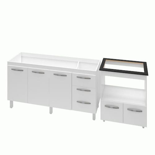 Armário Gabinete Balcão para Pia 138 cm Carina com Balcão para Cooktop 5 Bocas Forno Elétrico Elisa Branco