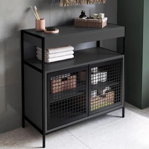 Torne seu banheiro um ambiente moderno e sofisticado com o Gabinete para Banheiro Industrial. Com um design inspirado no estilo industrial, este gabinete tem sofisticação e praticidade. Conta com um amplo espaço interno, e uma prateleira central trazendo elegância. Sua estrutura em aço com pintura Epoxi e composição interna em chapa MPD 15mm garantem durabilidade e charme, ideal para quem valoriza a funcionalidade do dia a dia. Este móvel chegará na sua casa separado em 01 volume.