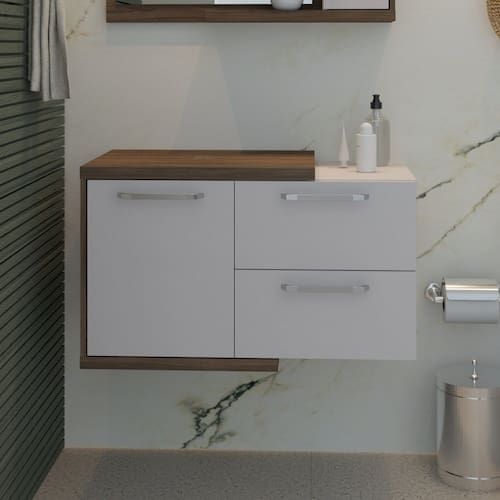 Produzido em MDP Perffect com tecnologia Microban e fitas de borda em PVC, que garantem maior durabilidade e resistência ao desgaste. Dobradiças com amortecedor, corrediças telescópicas, espelho lapidado são acessórios que conferem mais qualidade a todos os produtos da linha. Acabamento da Gaveta: BP Acetinado Acabamento da Porta: BP Acetinado Acabamento da Prateleira: BP Acetinado Acompanha Cuba: Não Acompanha Manual de Instalação: Sim Acompanha Parafusos Para Fixação Na Parede: Sim Ambiente Principal: Banheiro Complexidade da Montagem: Alta: deve ser montado por um montador especializado Comprimento da Prateleira: 36 cm Cor: Nogal/Branco Chess Cor do Produto: Nogal/Branco Chess Cor Interna: Nogal Escala de Brilho: Fosco Escala de Brilho da Gaveta: Fosco Escala de Brilho da Porta: Fosco Escala de Brilho da Prateleira: Fosco Furação para Cuba e Torneira: Não Gaveta com Chave: Não Itens Inclusos: 1 Gabinete + Manual Manual de Montagem e Instalação: https://cdn2.madeiramadeira.com.br/atributo/compace-dalex/2026591-1708-17176055809223.pdf Material da Gaveta: MDP Material da Porta: MDP Material da Prateleira: MDP Material do Puxador da Gaveta: Alumínio Material do Puxador da Porta: Alumínio Material do Tampo: MDP Material Principal: MDP Necessita Montagem: Sim Origem do Produto: Nacional Peso: 24,6 kg Peso Máximo por Gaveta: 2 kg Peso Máximo por Prateleira: 3 kg Possui Nichos: Não Possui Pés: Suspenso Possui Portas: 01 Possui Prateleiras: 01 Possui Recorte No Tampo Para Cuba: Não Possui Recorte No Tampo Para Misturador: Não Possui Sifão: Não Possui Tampo: Sim Produto Montado: Não Recomendações de Uso, Manutenção e Limpeza: Para a limpeza, utilize flanela seca ou pano macio levemente umedecido em água. Utilize um pano seco em seguida. Evite contato com produtos químicos (solventes, thinner, acetona, etc) e não utilize nenhum tipo de esponja de aço. Sapatas Niveladoras: Não Sistema de Montagem: Parafuso, girofix, corrediça, chapa L, cavilha, bucha Suporta Até (kg): 20 kg Tamanho Indicado Para Cuba: 55x55 Tipo de Corrediça da Gaveta: Metálica Telescópica Tipo de Dobradiça/Corrediça da Porta: Metálica Tipo de Gabinete: Gabinete Aéreo Tipo de Móvel para o Banheiro: Gabinete de Banheiro Tipo de Porta: Bater Tipo de Puxador da Gaveta: Externo Tipo de Puxador da Porta: Externo