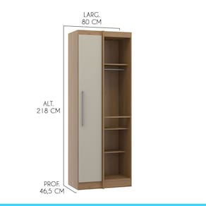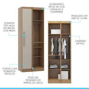 Caracter?sticas: Produzido em MDP de 15 mm Acabamento UV na cor Carvalho e Champanhe Puxador tipo Al?a em ABS na cor Prata Porta com Dobradi?a Met?lica Cabideiro em PVC Maleiro Pode ser montado em ambos os lados, se adaptando a modula??o que voc? planejar.