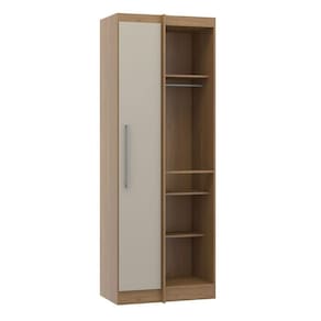 Armário Guarda Roupa De Canto Selene 80x218 Mdp Menu Móveis Carvalho O Armario de Canto para Guarda Roupa Modulado Selene foi desenvolvido para atender todas as suas necessidades do dia a dia com um design moderno, unindo funcionalidade e versatilidade. Os moveis modulados sao a tendencia do momento, assemelham aos moveis planejados, facilitam a composicao do espaco e possibilitam infinitas modulacoes diferentes para deixar o seu ambiente muito mais aconchegante. Alem disso, o armario de canto pode ser montado em ambos os lados, se adaptando a modulacao planejada. O Armario Selene e produzido com materiais de excelente qualidade, garantindo a durabilidade e vida util. Conheca a nossa linha de Quarto Modulado Selene, voce vai se surpreender. O melhor em moveis no design atual aliando conforto, qualidade e otimos precos, so na Menu Moveis! Caracteristicas: Produzido em MDP de 15 mm Acabamento UV na cor Carvalho e Champanhe Puxador tipo Alca em ABS na cor Prata Porta com Dobradica Metalica Cabideiro em PVC Maleiro Pode ser montado em ambos os lados, se adaptando a modulacao que voce planejar.