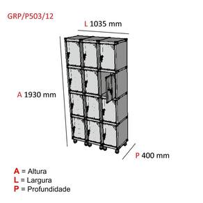 Armário Guarda Volume Locker Roupeiro 12 Portas Aço GRP 503/12 Pandin Móveis Cinza/Azul Del Rey - Azul Doce