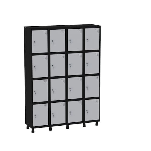 Armário Guarda Volume Locker Roupeiro 16 Portas Aço GRF 504/16 Preto/Cinza