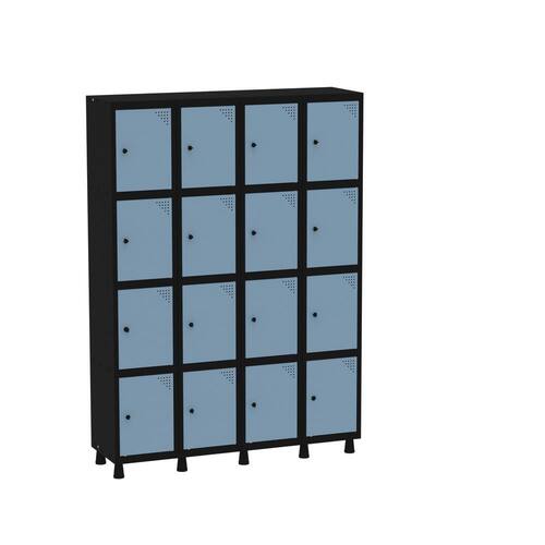 Armário Guarda Volume Locker Roupeiro 16 Portas Aço GRP 504/16 Preto/Azul Dali - Branco