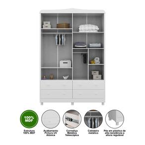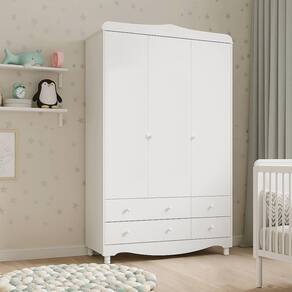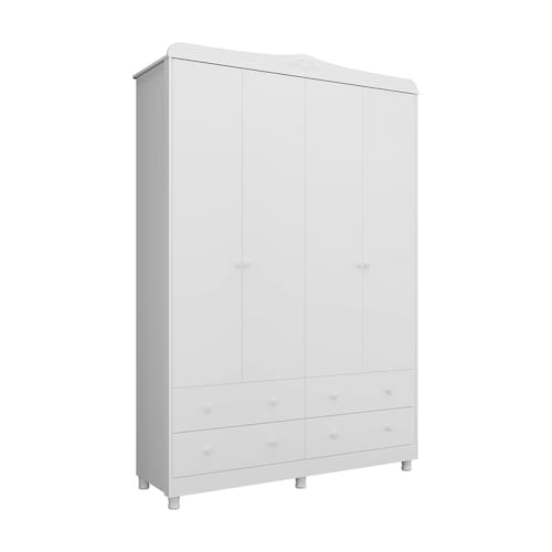 O Armário Infantil Elô 4 Portas Lisas é perfeito para manter o quarto do bebê ou da criança sempre organizado com charme e praticidade. Fabricado em 100% MDF, garante alta durabilidade e resistência. Possui pintura UV atóxica que preserva o brilho e protege a peça. Conta com cabideiro metálico, gavetas com corrediças telescópicas de deslizamento suave e pés de plástico de alta resistência com altura regulável. Os puxadores são em plástico, e o móvel acompanha um aplique decorativo de fixação opcional. Compatível com kit divisórias de gavetas (vendido separadamente).