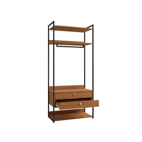 O Armário Kappesberg LI047 Canela/Preto Fosco da linha Crome Industrial oferece praticidade e estilo contemporâneo ao ambiente. Com dimensões de 201cm de altura, 89cm de largura e 44cm de profundidade, possui 2 gavetas espaçosas de 77cm de largura por 10cm de altura cada, ideais para organizar roupas menores e acessórios. Conta também com prateleiras funcionais com espaço inferior de 25cm e superior de 30cm, além de cabideiro de 100cm para pendurar peças longas. Produzido em Metal/MDP de alta durabilidade, acabamento fosco sofisticado e capacidade de até 7kg, é perfeito para closets, quartos e ambientes modernos.
