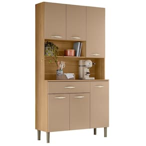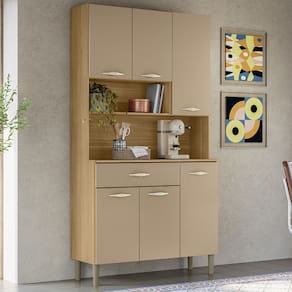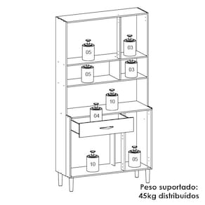MDPO Armário Kit Cozinha é perfeito para quem busca praticidade e estilo na organização do ambiente. Produzido em MDP de 12mm e 15mm, conta com 06 portas e 01 gaveta equipadas com dobradiças e corrediças 100% metálicas. O design conta com puxadores ergonômicos e pés fixos, ambos em plástico resistente (poliestireno e polipropileno), além de nichos decorativos. Com pintura UV, o acabamento do móvel oferece maior proteção, realce nas cores e facilidade na limpeza do dia a dia. Este móvel chegará em sua casa separado em 01 volume.