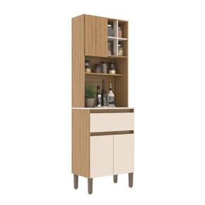 Armário Kit Cozinha com 3 Portas, 1 Gaveta Ac4311 Naturalle/Cristalo/Petra - Marrom