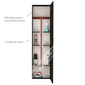 - Ideal para pendurar vassoura e rodo e tem várias prateleiras para organização de todos os produtos de limpeza.