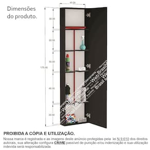 Medidas do produto: -Comprimento: 45 cm -Altura: 175 cm -Profundidade: 15 cm *Espessura: 1,5 cm;