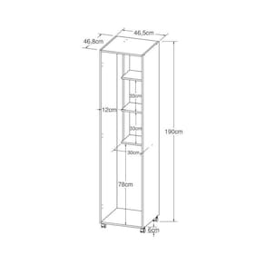 Dimensões do produto montado: Altura: 190cm | Largura: 46,5cm | Profundidade: 46,8cm *Você pode consultar as medidas detalhadas na imagem técnica do produto.