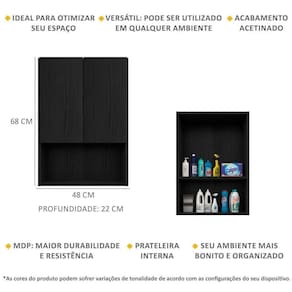 O Armário Lavanderia com 2 Portas Ibiza Multimóveis é produzido em MDP com acabamento acetinado (cerca de 20% de brilho), que garante maior durabilidade, além de um acabamento superior. Prático e funcional, possui 2 prateleiras (suportam 4 Kg) para manter o seu ambiente organizado e o seu design minimalista torna o móvel muito versátil, podendo ser utilizado de diversas maneiras e em qualquer ambiente.