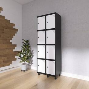 Armário Locker Guarda-roupa 8 Portas Aço Grp 502/8 Preto/Branco