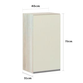 Características: Corpo/Caixaria: MDP Legno Crema FF. Frontais: MDP Branco MAT. Frontais: MDP Legno Crema, Concreto, Nogueira Dourado - BP. Frontais: MDP Preto TXT, Kashmir, Nodo, Argila, Connect - BP. CHEES Dobradiças: Ø35 mm. Puxadores: Alumínio Gola - Prata. Prateleiras:1 Portas: 1 Itens inclusos: Manual de montagem, ferragens e acessórios. Montagem com cavilhas e parafusos.