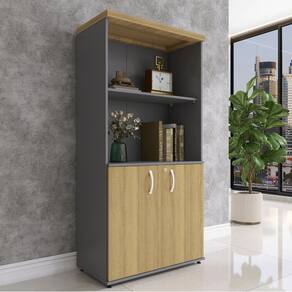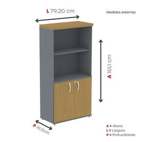 Possui 2 portas pivotantes com fechadura e chave, oferecendo proteção para documentos, materiais e objetos pessoais. Seu interior é versátil, com parte equipada com prateleiras para melhor organização e espaço livre para itens maiores.