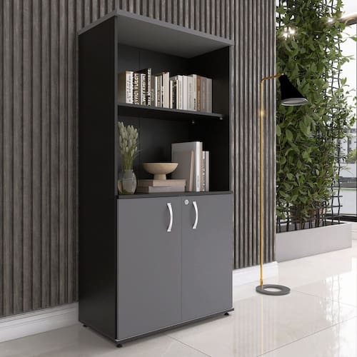 Armário Misto para Escritório 2 Portas Pivotante Preto/Grafito - Cinza