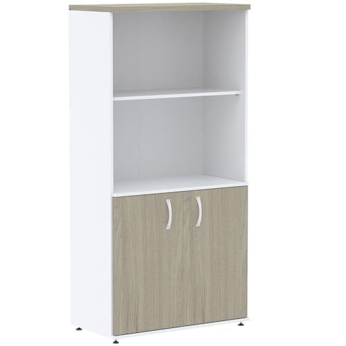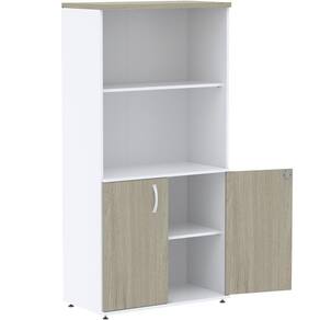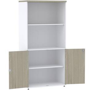 Armário Misto PE25 Pandin 79,20 cm (largura) em MDP Cor Nogueira CasaBlanca e Branco com Duas portas e Prateleira superior - Bege