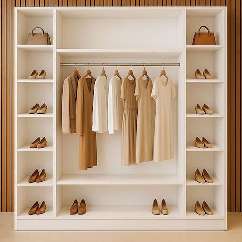 Com 12 prateleiras, 1 cabideiro metálico e 3 formas de montagem, ela se adapta ao seu estilo e transforma qualquer espaço em um verdadeiro cenário de beleza e praticidade.