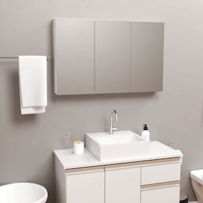 • Amplo espaço de armazenamento: Conta com 3 portas, oferecendo muito mais espaço para armazenar produtos de higiene pessoal e outros itens essenciais.