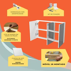 Inclui: Parafusos para fixação do móvel na parede, manual de fixação, espelhos nas portas, portas com amortecedor.