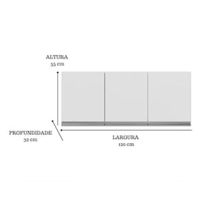 Armário Mulltiuso Aéreo Andreia 3 Portas 120cm - Ajl Móveis Branco
