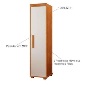 Características do Multiuso 1 Porta Delta: - 100% MDF; - Puxador em MDF; - 2 Prateleiras Móvel e 2 Prateleiras Fixas; - Pés em Madeira; - Encabeçamento de 20 mm nas laterais e base;