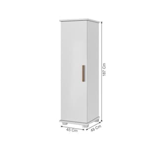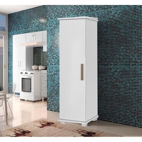 Armário Multiuso 1 Porta 4 Prateleiras Cuiaba Arte Móveis Branco Que tal este belíssimo armário multiuso, prático e versátil vai bem em diversos ambientes da casa, possui 4 prateleiras seno uma removível e suporte para vassouras/rodos com puxadores ergonômicos cromados e um acabamento impecável, muito charmoso. Pesos e Dimensões Altura dos Pés 6 cm Altura (cm) 187 cm Largura (cm) 45 cm Profundidade (cm) 48 cm Peso (kg) 34.7 kg Garantia Garantia 03 Meses Materiais e Acabamentos Material Principal MDF/MDP Material da Porta MDP Acabamento Pintura UV Escala de Brilho Semi-Brilho Material dos Pés Plástico Acabamento da Porta Pintura UV Acabamento dos Pés Liso Escala de Brilho da Porta Semi-Brilho Material do Puxador da Porta Cromado Tipo de Dobradiça/Corrediça da Porta Metálica Acabamento da Prateleira Pintura UV Escala de Brilho da Prateleira Fosco Material da Prateleira MDP Montagem Necessita Montagem Sim Complexidade da Montagem Média: pode ser montado por mais de uma pessoa e/ou necessite de maior conhecimento para montagem Sistema de Montagem Parafusos, Cavilhas, Pregos. Recomendações de Uso, Manutenção e Limpeza Para limpeza utilizar pano macio seco ou levemente umidecido em água. Não utilizar produtos abrasivos. Características Quantidade de Prateleiras 04 Prateleiras Quantidade de Portas 1 Porta Quantidade de Gavetas 0 Gavetas Possui Suporte para Vassoura Sim Tipo de Porta Bater Marca Arte Móveis Tipo de Armário Multiuso Armário Multiuso Suporta Até (kg) 30 kg Possui Rodízio Não Possui Prateleiras Sim Possui Portas Sim Possui Pés 04 Possui Gavetas Não Peso Máximo por Prateleira 5 kg Linha ou Coleção Cuiabá Estilo Clássico Pés Reguláveis Não Sapatas Niveladoras Não Cor Interna Branco Tipo de Puxador da Porta Externo Ambiente Principal Área de Serviço Ambiente Cozinha Cor Predominante Branco Itens Inclusos Itens Inclusos 1 Armário e Manual de Montagem. Ean: 7898767080891