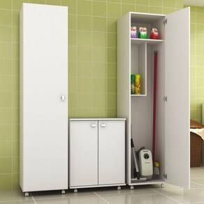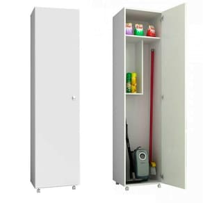 Procurando Armário de serviço mais moderno e sofisticado. O Armário de serviço AM3100 é produzido em MDP de 15 mm, matéria prima que respeita o meio ambiente. Possuir 1 portas onde são utilizadas dobradiças metálicas para garantir a suavidade e segurança no abrir e fechar. 2 nichos internas com o espaço interno bem aproveitado. Ganchos metálicos para pendurar rodos, pás, vassouras e etc. Possuir 4 rodízios em plástico resistente -polipropileno- permitem movimentar o móvel com facilidade. Puxadores em plástico resistente -poliestireno-. Acabamento das portas em pintura fosca com secagem UV. Tenha em casa um produto prático e funcional, seu ambiente ficará mais bonito e mais moderno. Aproveite!