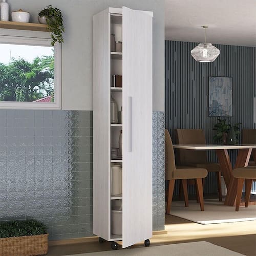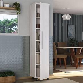* Imagens meramente ilustrativas. Armário multiuso e multi-ambiente, possui 1 porta e 5 prateleiras internas, sendo 4 delas móveis e apenas a do meio fixa. Muito comumente é utilizado como sapateira, guarda-roupa infantil, para guardar mantimentos, produtos de limpeza ou no escritório. - 6 Espaços dividido por prateleiras para organizar melhor os objetos; - Acabamento Fosco Texturizado; - Dobradiças Metálicas; - Rodízios com chapa de ferro; - Puxador cromado. Dimensões do produto montado: Altura 182 cm Largura 34 cm Profundidade 39 cm. Produto entregue desmontado. Acompanha manual de montagem que também está disponível no site do fabricante. Perguntas frequentes: 1) Qual a capacidade suportada? RESP 1) Suporta até 25kg por prateleira e até 200kg total no produto. 2) As prateleiras são reguláveis? RESP 2) Não, as prateleiras não são reguláveis. A prateleira central é fixa inclusive. As demais poodem ser removidas se necessário. 3) O produto vem montado ou desmontado? RESP 3) O móvel é entregue desmontado, com kit de ferragens e manual de montagem. O serviço de montagem de móveis pode ser oferecido adicionalmente ao simular o para sua (se disaponível a loja vai informar). 4) É em MDF? RESP 4) Não. O produto é em MDP 15mm revestido com BP. 5) Posso mudar as medidas? RESP 5) Não pode. Atenção: Não nos responsabilizamos, no ato da , por desmontagens, subir escadas/elevadores ou transporte por guincho para apartamentos. Eventuais despesas são de responsabilidade do cliente. Confira as dimensões deste produto e certifique-se de que o mesmo passará normalmente por supostos elevadores, portas, escadas e/ou corredores de sua moradia.