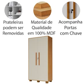 Armário Multiuso 100% MDF 2 Portas c/ Chave Dream - Off White | Nature