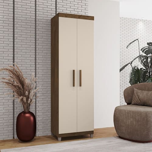 O Armário Multiuso Dalila é a solução ideal para quem busca organização e funcionalidade em ambientes diversos. Com 190 cm de altura, 58 cm de largura e 33 cm de profundidade, ele oferece 5 prateleiras para facilitar a organização de seus itens. As 2 portas garantem praticidade e um visual clean, perfeito para escritórios, lavanderias ou outros ambientes. Seu design robusto e acabamento de alta qualidade proporcionam durabilidade e fácil manutenção, tornando-o uma excelente opção para quem precisa de um móvel versátil e eficiente. Acabamento da Porta: Pintura UV Acabamento da Prateleira: Pintura UV Ambiente Principal: Escritório Armário Suspenso: Não codigo_ean: 7900288191793 Complexidade da Montagem: Baixa: pode ser montado por uma pessoa sozinha Cor: Canela/ Off White Cor do Produto: Canela/ Off White Cor Interna: Canela Escala de Brilho: Fosco Escala de Brilho da Porta: Fosco Escala de Brilho da Prateleira: Fosco Formato do Armário: Retangular Itens Inclusos: 1 Armário, Kit Ferragens e Manual de Montagem Linha ou Coleção: Dalila Manual de Montagem e Instalação: https://product-hub-prd.madeiramadeira.com.br/979269/documents/ab6fcc29-5efd-40c8-9d78-05ae591c77842708601615317401628420944.pdf Marca: Móveis Bosi Material da Porta: MDP Material da Prateleira: MDP Material do Puxador da Porta: Plástico Material dos Pés: Plástico Material Principal: MDP Necessita Montagem: Sim Orientação do Armário: Vertical Origem do Produto: Nacional Pés Reguláveis: Não Peso: 37 kg Peso Máximo por Prateleira: 8 kg Possui Espelho: Não Possui Mesa Retrátil: Não Possui Pés: 04 Possui Portas: 02 Possui Prateleiras: 04 Quantidade de Armários: 1 Recomendações de Uso, Manutenção e Limpeza: Limpar com pano seco Sapatas Niveladoras: Não Sistema de Montagem: 1 Kit de Acessórios Suporta Até (kg): 70 kg Tamanho do Armário: Alto (Acima de 150cm) Tipo de Armário: Totalmente Fechado Tipo de Dobradiça/Corrediça da Porta: Metálica Tipo de Puxador da Porta: Externo