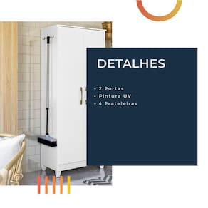 Armário Multiuso 2 Portas 4 prateleiras Jade Moval Branco MEDIDAS: A = 170 cm L = 70 cm P = 41 cm | MODELO: Armário Multiuso Jade | COR: Branco | ACABAMENTO: Brilho | INSTRUCOES E CUIDADOS: Limpar com pano seco, manter em lugar livre de umidade, ao abrigo de exposição direta ao sol. | MATERIAL: MDP | GAVETAS: Não possui | SISTEMA MONTAGEM: Parafusos e cavilhas | PES: Sim, possui 4 pés | AVISO: Montagem não inclusa. Entregamos até a porta de entrada da casa do cliente ou até a portaria do condomínio. | MARCA: Moval | PINTURA: UV (Ultravioleta) | PORTA: Sim, 2 portas | PRATELEIRAS: Sim, possui 4 prateleiras | PESO: 35kg | DIFERENCIAL: Suporte para vassouras Cor: Branco