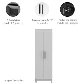 Precisando de um Multiuso para sua cozinha, quarto, lavanderia, escritório ou sala? Pois fique sabendo que o Multiuso Lina é perfeito para você com amplo espaço de armazenamento em suas 2 Portas com dobradiças metálicas e 5 Prateleiras, sendo a superior removível, durabilidade com sua estrutura em MDP e detalhes como Puxadores em MDF, Pés Opcionais na montagem, Fundo Inteiriço que proporciona praticidade para você ao abrir e fechar! São muitas vantagens para você aproveitar com esse produto! Móveis incríveis como esse só aqui na Casa Chick!