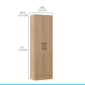 Armário Multiuso 2 Portas 52x170cm MDP Carvalho 3000 Menu Móveis - Palha