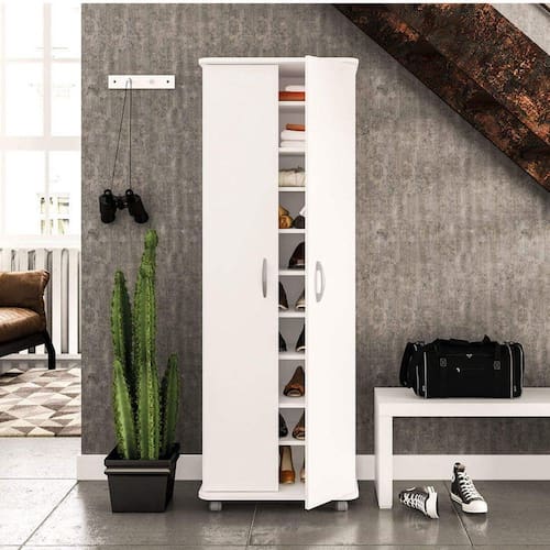 +Como+fazer+para+guardar+os+cal%E7ados+da+fam%EDlia+inteira+e+in%FAmeros+outros+objetos%2C+deixar+tudo+organizado%2C+bonito+e+ainda+n%E3o+ocupar+espa%E7o%3F+A+resposta+para+todas+essas+d%FAvidas+est%E1+dentro+do+arm%E1rio+Jade.+E+se+voc%EA+tiver+uma+mala+gigantesca+para+guardar%2C+basta+remover+algumas++e+pronto.+Al%E9m+do+%F3timo+aproveitamento+de+espa%E7o%2C+o+arm%E1rio+Jade+possui+quatro+rod%EDzios+para+facilitar+a+limpeza+do+ambiente%2C+j%E1+que+voc%EA+pode+moviment%E1-lo+sem+muito+esfor%E7o.+Isso+sim+que+%E9+praticidade%2C+n%E9%3F%0AEle+combina+muito+bem+com+o+seu+quarto+ou+closet%2C+mas+se+quiser+deix%E1-lo+l%E1+na+lavanderia+n%E3o+tem+problema+nenhum.+Ele+se+d%E1+muito+bem+por+l%E1+tamb%E9m. Acabamento: BP Acabamento da Porta: BP Acabamento da Prateleira: BP : 168,6 cm : 168,6 cm Ambiente: Quarto Cr: Branco Cr: Branco Cr Interna: Branco Cr Predominante: Branco Escala de Brilho: Fosco Escala de Brilho da Porta: Fosco Escala de Brilho da Prateleira: Fosco Estilo: Contemporâneo Informações Complementares: Se você está procurando um móvel com uma durabilidade maior, escolha o armário Jade. O revestimento em BP é mais resistente a abrasão (desgaste por fricção) e é muito mais fácil de limpar, principalmente se você tiver crianças por perto. Itens Inclusos: 1 Armário Multiuso, Kit de Ferragens, Manual de Montagem, Termo de Garantia e Catálogo de Produtos. : 59,6 cm : 59,6 cm Linha ou Coleção: Jade Material da Porta: MDP Material da Prateleira: MDP Material do Puxador da Porta: ABS Material dos Pés: Polipropileno Material Principal: MDP Necessita Montagem: Sim Peso: 40,42 kg Possui Pés: 04 Possui Portas: 02 Possui Rodízio: Sim : 41,5 cm : 41,5 cm Recomendações de Uso, Manutenção e Limpeza: Limpar com pano macio umedecido em água e sabão neutro, seguido de pano seco. Não utilizar produtos químicos ou abrasivos para limpeza, pois estes danificam o revestimento do móvel. Rodízio com Trava: Não Sapatas Niveladoras: Não Sistema de Montagem: Cavilha, Parafuso, Minifix e Prego. Suporta até (kg): 7 kg Tipo de Dobradiça/Corrediça da Porta: Metálica Tipo de Porta: Bater Tipo de Puxador da Porta: Externo