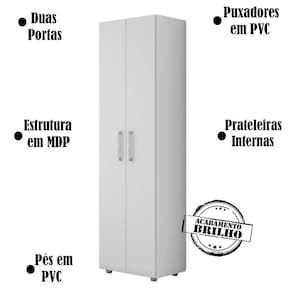 Armário Multiuso 2 Portas Beatriz, uma excelente opção para você que busca design fácil de incluir em qualquer ambiente. Estrutura em MDP de 12 e 15 mm, pintura com acabamento em UV. Composto por 2 portas articuladas com dobradiças metálicas, puxadores em PVC, 4 prateleiras para melhor organização, acompanha pés em PVC. É a escolha certa para você que precisa de praticidade mantendo o ambiente moderno e aconchegante. Produzido com controle de qualidade e com excelente acabamento. Este móvel chegará na sua casa separado em 1 volume.