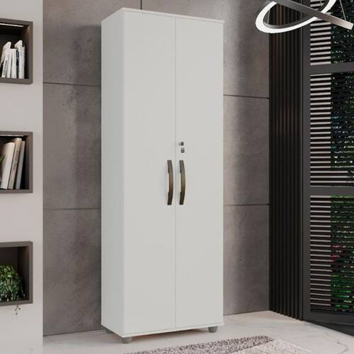 Armário Multiuso 2 Portas Caio CHF Móveis O Multiuso Caio é ideal para auxiliar na organização do ambiente, oferecendo um amplo espaço para armazenar uma variedade de produtos. Feito em MDP, possui 2 portas de bater com chave para maior segurança e conveniência. Conta com 4 prateleiras capazes de suportar até 15 kg cada. Os puxadores em ABS bronze e os 4 pés adicionam um toque de elegância. Ele transforma seu espaço em algo verdadeiramente especial.