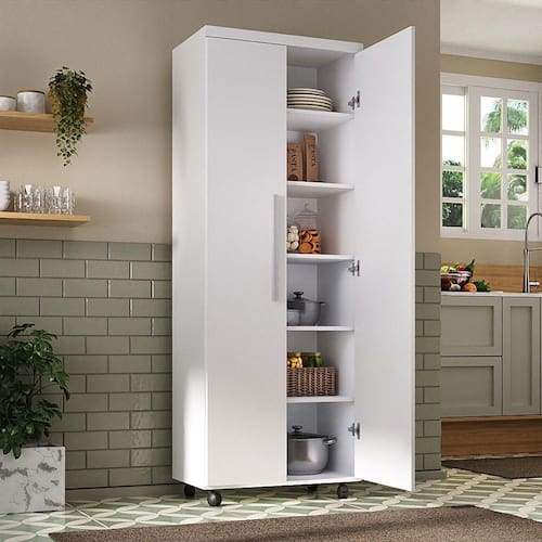 * Imagens meramente ilustrativas. Armário multiuso e multi-ambiente, possui 2 portas e 5 prateleiras internas, sendo 4 delas móveis e apenas a do meio fixa. Muito comumente é utilizado como sapateira, guarda-roupa infantil, para guardar mantimentos, produtos de limpeza ou no escritório. - 6 Espaços dividido por prateleiras para organizar melhor os objetos; - Chapa de MDP 15mm de espessura; - Acabamento Fosco Texturizado; - Dobradiças Metálicas; - Rodízios com chapa de ferro; - Puxadores cromados. Dimensões do produto montado: altura 182 cm largura 67 cm profundidade 39 cm Manual de montagem disponível no site do fabricante. Perguntas frequentes: 1) Qual a capacidade suportada? RESP 1) Suporta até 25kg por prateleira e até 200kg total no produto. 2) As prateleiras são reguláveis? RESP 2) Não, as prateleiras não são reguláveis. A prateleira central é fixa inclusive. As demais poodem ser removidas se necessário. 3) O produto vem montado ou desmontado? RESP 3) O móvel é entregue desmontado, com kit de ferragens e manual de montagem. O serviço de montagem de móveis pode ser oferecido adicionalmente ao simular o para sua (se disaponível a loja vai informar). 4) É em MDF? RESP 4) Não. O produto é em MDP 15mm revestido com BP. 5) Posso mudar as medidas? RESP 5) Não pode. Atenção: Não nos responsabilizamos, no ato da , por desmontagens, subir escadas/elevadores ou transporte por guincho para apartamentos. Eventuais despesas são de responsabilidade do cliente. Confira as dimensões deste produto e certifique-se de que o mesmo passará normalmente por supostos elevadores, portas, escadas e/ou corredores de sua moradia.