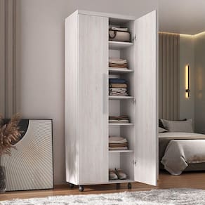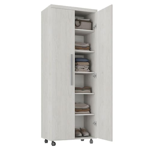 * Imagens meramente ilustrativas. Armário multiuso e multi-ambiente, possui 2 portas e 5 prateleiras internas, sendo 4 delas móveis e apenas a do meio fixa. Muito comumente é utilizado como sapateira, guarda-roupa infantil, para guardar mantimentos, produtos de limpeza ou no escritório. - 6 Espaços dividido por prateleiras para organizar melhor os objetos; - Chapa de MDP 15mm de espessura; - Acabamento Fosco Texturizado; - Dobradiças Metálicas; - Rodízios com chapa de ferro; - Puxadores cromados. Dimensões do produto montado: altura 182 cm largura 67 cm profundidade 39 cm Manual de montagem disponível no site do fabricante. Perguntas frequentes: 1) Qual a capacidade suportada? RESP 1) Suporta até 25kg por prateleira e até 200kg total no produto. 2) As prateleiras são reguláveis? RESP 2) Não, as prateleiras não são reguláveis. A prateleira central é fixa inclusive. As demais poodem ser removidas se necessário. 3) O produto vem montado ou desmontado? RESP 3) O móvel é entregue desmontado, com kit de ferragens e manual de montagem. O serviço de montagem de móveis pode ser oferecido adicionalmente ao simular o para sua (se disaponível a vai informar). 4) É em MDF? RESP 4) Não. O produto é em MDP 15mm revestido com BP. 5) Posso mudar as medidas? RESP 5) Não pode. Atenção: Não nos responsabilizamos, no ato da , por desmontagens, subir escadas/elevadores ou por guincho para apartamentos. Eventuais despesas são de responsabilidade do cliente. Confira as dimensões deste produto e certifique-se de que o mesmo passará normalmente por supostos elevadores, portas, escadas e/ou corredores de sua moradia.