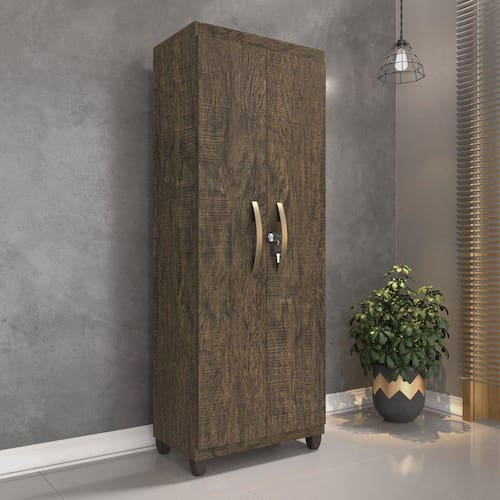 É o item que faltava para organização do seu ambiente! o Armário Multiuso conta com design compacto com duas portas e prateleiras internas ou cabideiro. Com amplo espaço, é perfeito para sua área de serviço, dispensa, cozinha, quarto ou até mesmo o armário pode ser utilizado como sapateira. Sua estrutura em MDP possui revestimento em pintura UV, que deixam o acabamento mais resistente e durável. E para completar, conta com puxadores exclusivos que dão um toque de estilo no móvel. Acabamento da Porta: Pintura UV Acabamento da Prateleira: Pintura UV Acabamento dos Pés: Polipropileno Altura dos Pés: 6 cm Altura Máxima dos Pés: 6.0000 Ambiente Principal: Quarto codigo_ean: 7908308769977 Complexidade da Montagem: Média: pode ser montado por mais de uma pessoa e/ou necessite de maior conhecimento para montagem Cor: Wengue Marromle Cor do Produto: Wengue Marromle Escala de Brilho: Fosco Escala de Brilho da Porta: Fosco Escala de Brilho da Prateleira: Fosco Informações Complementares: O produto possui dupla montagem interna. Opção de montagem 1: O produto pode ser montado com 1 cabideiro e 2 prateleiras. Opção de montagem 2: O produto pode ser montado com 4 prateleiras. Itens Inclusos: 1 Armário Multiuso, Kit Ferragens e Manual de Montagem Manual de Especificação Técnica: https://product-hub-prd.madeiramadeira.com.br/838487/documents/10f200fc-000d-4a54-a07c-55462a59431b124251979082973038481.pdf Manual de Montagem e Instalação: https://product-hub-prd.madeiramadeira.com.br/838487/documents/1ab7db7d-1063-4df5-86bc-29dbd8ee2929124252079082973038481.pdf Material da Porta: MDP Material da Prateleira: MDP Material do Puxador da Porta: Cromado Material dos Pés: Polipropileno Material Principal: MDP Montagem Flex: Sim Necessita Montagem: Sim Origem do Produto: Nacional Pés Reguláveis: Não Peso: 31,5 kg Peso Máximo por Prateleira: 10 kg Possui Espelho: Não Possui Pés: 04 Possui Portas: Sim Recomendações de Uso, Manutenção e Limpeza: Limpar com pano macio e levemente umedecido. Não utilizar solventes a base e de inflamáveis. Não utilizar produtos abrasivos. Sapatas Niveladoras: Não Sistema de Montagem: Parafusos, cavilhas e cantoneiras. Suporta Até (kg): 50 kg Tipo de Armário Multiuso: Armário Multiuso Tipo de Dobradiça/Corrediça da Porta: Metálica Tipo de Porta: Bater Tipo de Puxador da Porta: Externo Ean: 7908308769977